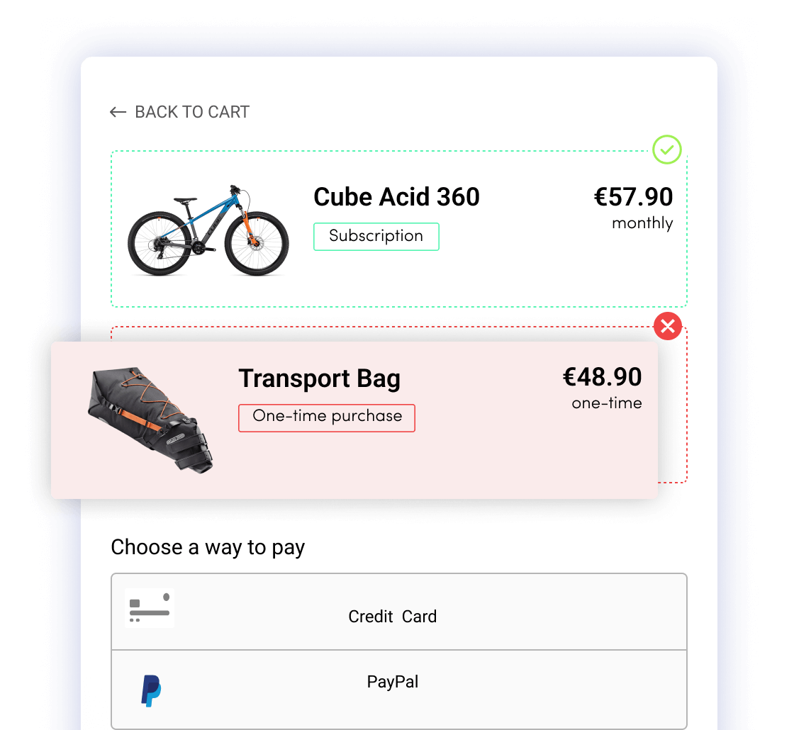 - Replacing shop system checkout with circuly checkout: In order to bypass the limitations of a shop system in dealing with recurring orders, circuly replaces the shop system checkout with the circuly white-label checkout.